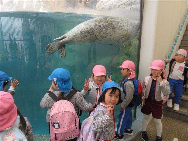 「ペンギンが楽しみ~」・「サメいるかなー?」と楽しみにしていたお別れ遠足。
