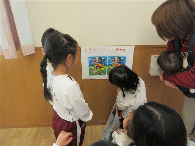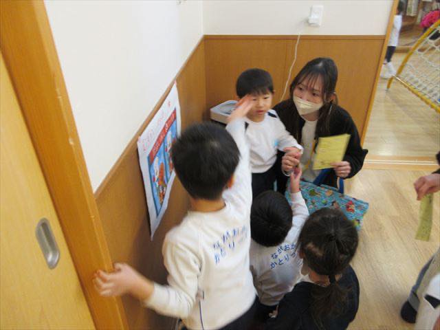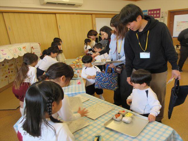 R8年2月19日(木) 【ひよこ組】~親子教室~ こんにちは!ひよこ組です(^^♪ 今日は、待ちに待った今年度ラストの親子教室でした。 年長組さん主催のパン屋さん&身体測定&クイズ・ 親子でゲーム遊び&給食と、盛りだくさん♪ みんなで思いっきり楽しみましたよ♪ そんな様子をお知らせしまーす!! 年長組さんのパン屋さん!美味しそうなパンがいっぱーい(^^♪ クイズコーナー!間違い探し、むずかしいな~ 身体測定!お姉さんたちが優しく教えてくれています だるまさんが・・・・ころんだ!! しっぽ取り!!まてまて~ お家の人と美味しい給食♪から揚げ美味し~い! 皆さん、今日はありがとうございました!!