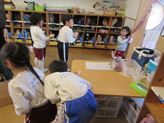 2026年2月19日R8年2月19日(木) 年長組 今日はひよこ組の親子教室の中で、子どもたちと一緒に考えた『お店屋さん』をオープンしました! お店屋さんは、『クイズ(間違い探し)』『身長体重測定』『す♡さ パン屋』の3つ。子どもたちは、各担当に分かれて、「どのパンがいいですか?」「ここでくつをぬいでくださーい」「どこがちがうかな?」…と大騒ぎしながら楽しんでいました♪ そして、今日は給食後に長岡第5小学校のグランドへ! 「わあー広ーい!!」「鉄棒沢山あるー!」と大はしゃぎしていましたよ。 幼稚園で過ごすのも残りわずか…。みんなで、残りの毎日を楽しもうね♡