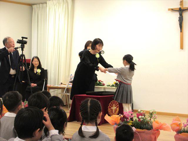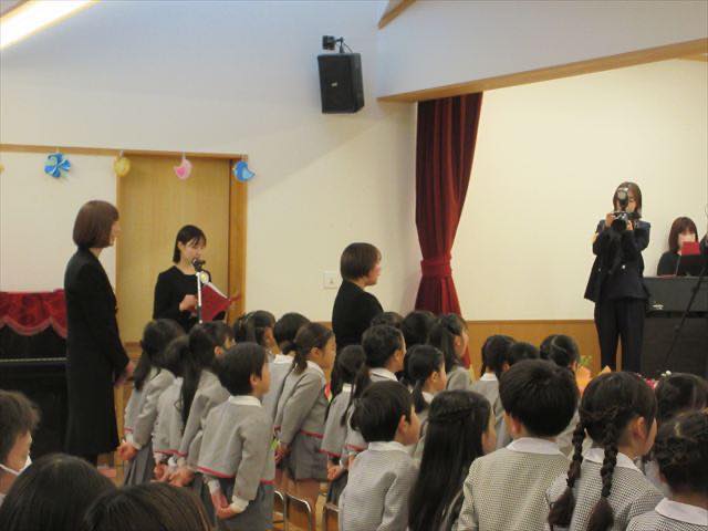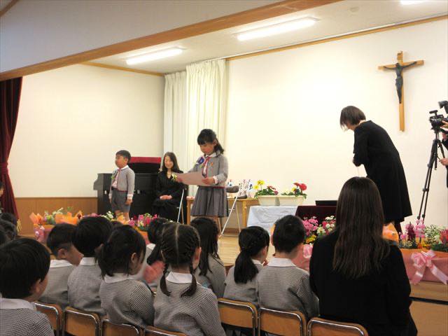 16日、年長組35人の子どもたちが無事に幼稚園を巣立っていきました。