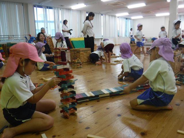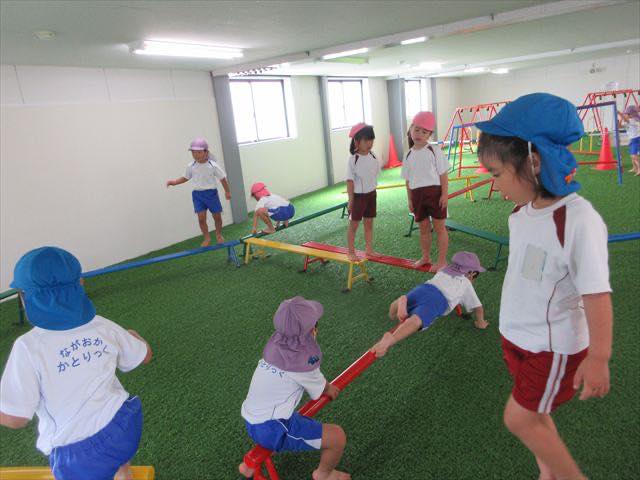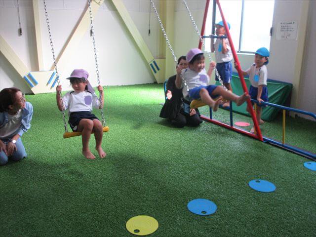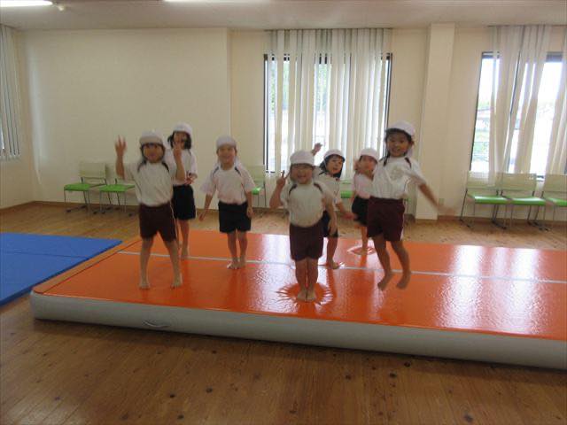 午後からは場所を変えて、色とりどりのカプラやトランポリンなどをして楽しみました。