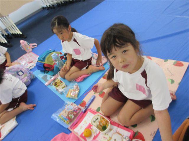 たっぷり遊んだあとは、お楽しみのお弁当とおやつタイム。