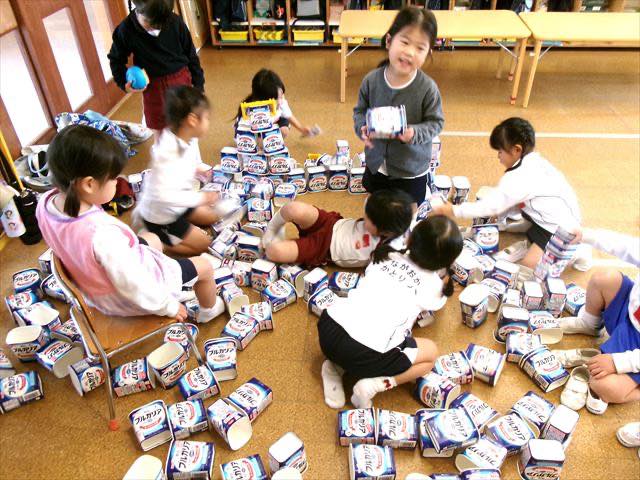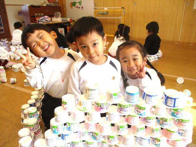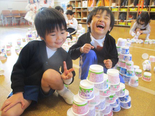 お部屋遊びでは、ヨーグルトの容器やカップで遊ぶのがブームでした!