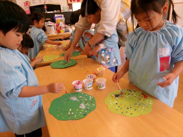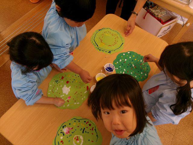 出来上がったリースにお顔の写真を貼って飾ると、「ぼくのだー!」「わたしのー!」とみんな大喜びでした♪