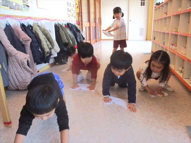 よーいドン!でお部屋の中や廊下を雑巾がけ競争!!