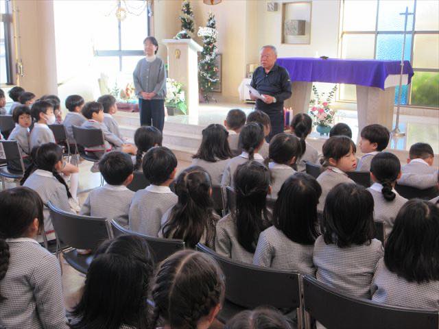 協会の温かい雰囲気を感じながら、クリスマスのお話を静かに聞いていました。